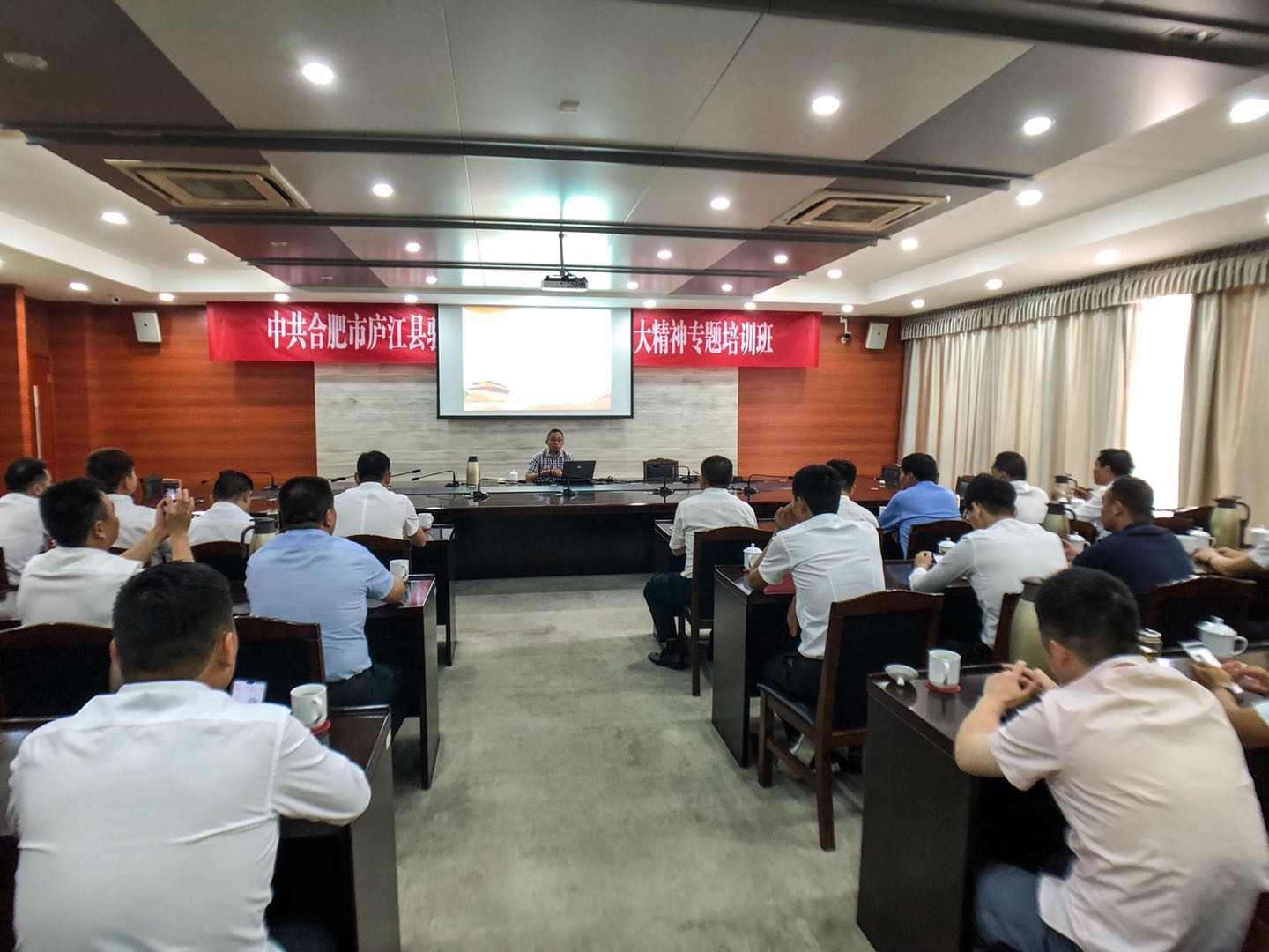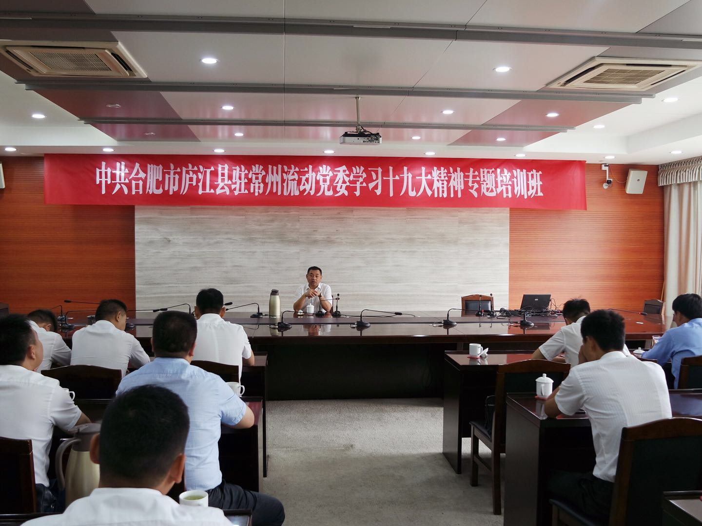 2018年6月5日,中共庐江县驻常州流动党委组织商会党员及党员干部,在常州市委党校参加“学习十九大精神专题培训班”,并邀请了中共江阴市委党校高级讲师张启伟作“迈向新时代的伟大宣言——学习宣传贯彻党的十九大精神”的专题报告。 会上就成立商会党支部事宜作了研究和探讨。庐江县驻常州流动党委书记杨德传表示,要认真筹备成立商会党支部,争取在七一之前建设好商会党支部,其他各支部也要陆续做好支部建设,迎接中国共产党建党97周年。