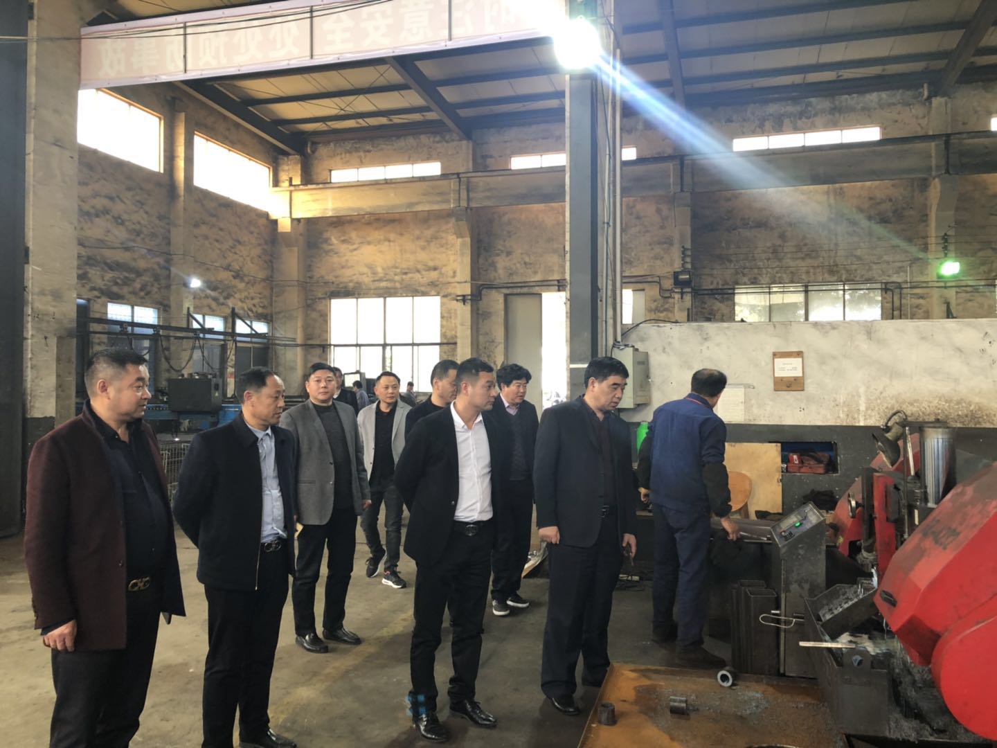 首先,考察团一行前往我商会副会长单位江苏方瑞机械有限公司进行考察,董事长殷方义热情接待了考察团一行。在考察期间,殷董事长带领考察团一行参观了工厂生产车间、仓库及生产流程和加工技术,并向考察团领导对企业目前发展规模、前景和下一步规划进行了详细的讲解,考察团对企业有了更加全面和深入的了解。参观结束后,汪主席一行对企业在行业的发展赞不绝口,鼓励其在有利于企业发展的情况下,回乡扩大生产。