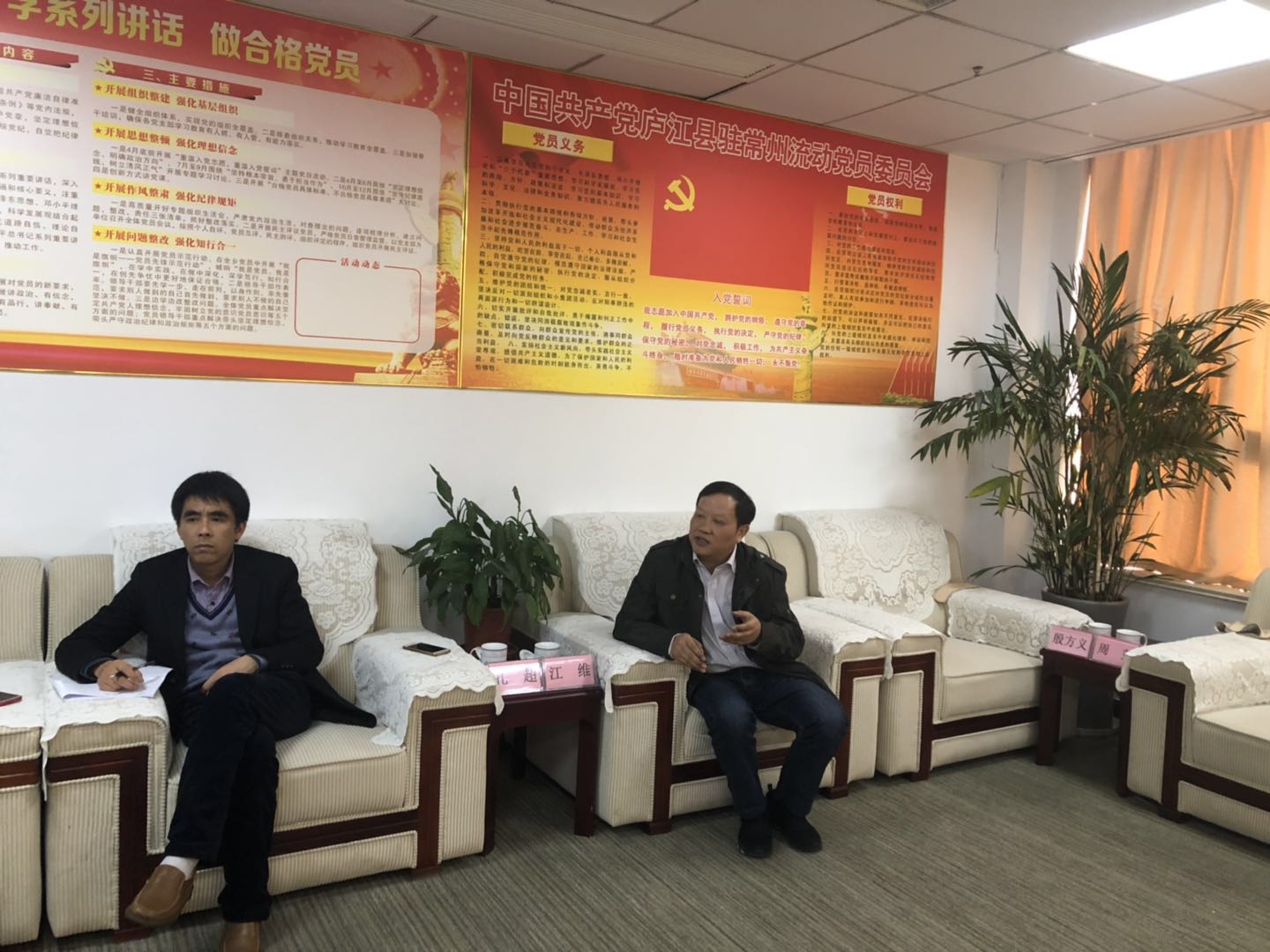 3月25日下午,合肥庐江县政协党组书记、主席汪庆才,县政协党组副书记、副主席张平,县政协党组成员、秘书长胡传国,县工商联副主席江维,县政协专委办副主任孔超一行来常州调研指导工作,就常州合肥、庐江商会和庐江在常企业发展情况进行实地考察。常州合肥商会执行会长、庐江县驻常州流动党委书记杨德传,商会常务副会长、党委委员方明才,商会常务副会长、党委委员魏传生,商会常务副会长张茂春,副会长兼副秘书长夏修虎,商会副会长、商会党支部书记范昌仓,商会副会长、商会党支部委员李所彬等陪同考察。