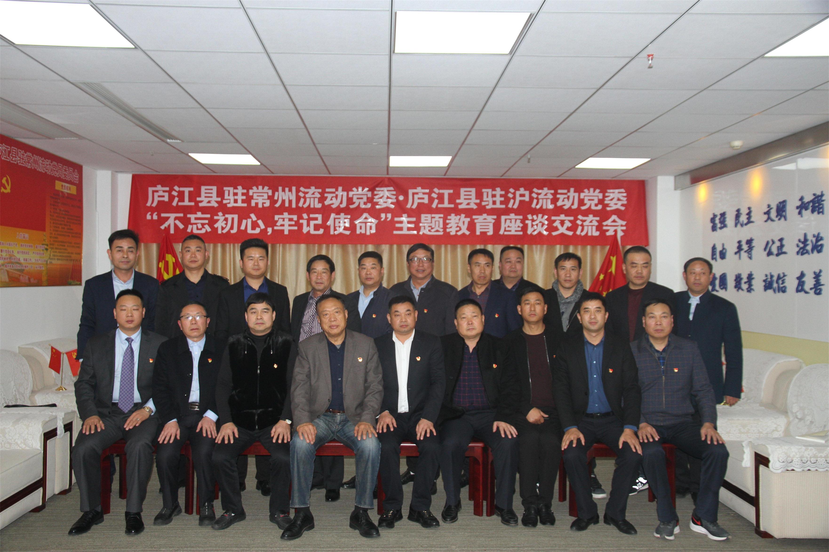 2019年11月30日,庐江县驻沪流动党委书记张胜和、上海庐江商会会长王飞等一行15人来常州就党建工作进行互动交流。庐江县驻常州流动党委接待了驻沪流动党委一行,并召开了“不忘初心,牢记使命”主题教育座谈会。