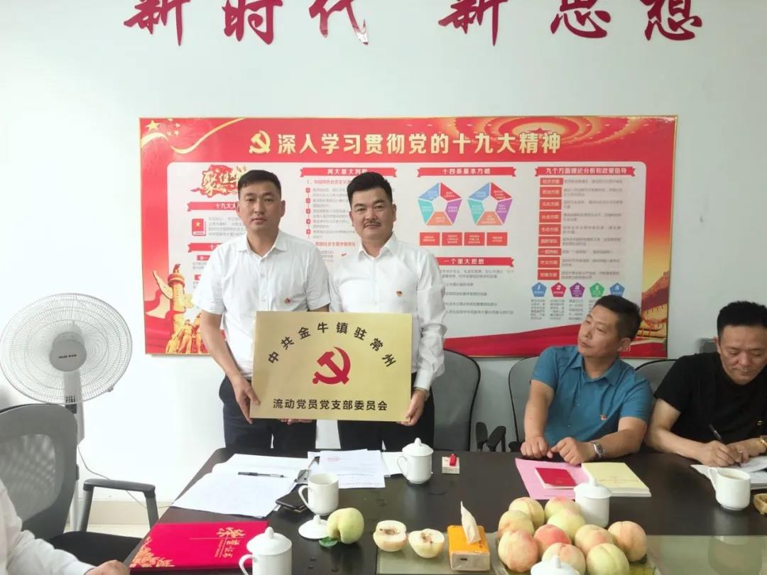 党委书记杨德传宣读《关于金牛镇驻常州流动党支部职务任命函》,王玉华同志担任金牛镇驻常州流动党支部书记,朱来华同志担任组织委员,夏润苗同志担任宣传委员。党委副书记周道贵为金牛镇驻常州流动党支部授牌。